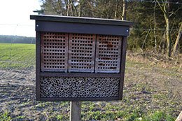 Ohne Insekten kein Obst: Unsere natürlich vorkommenden Insekten sind unerlässlich für die Entwicklung des Obstes. Sie sorgen für die Bestäubung unsere Blüten. Um dies zu unterstützen, bringen Imker ihre Bienenvölker in unsere Obstanlagen. Um den Insektenbestand zu erhöhen und zu pflegen stehen zahlreiche Insektenhotels in unseren Plantagen.